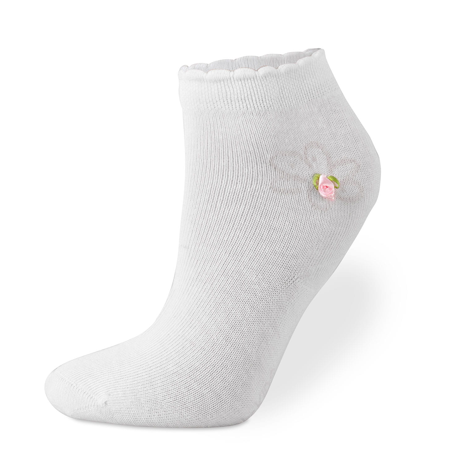 Eleganckie skarpetki dziewczęce z ręcznie robioną aplikacją, zapewniają wysoki komfort noszenia dzięki dużej ilości bawełny.