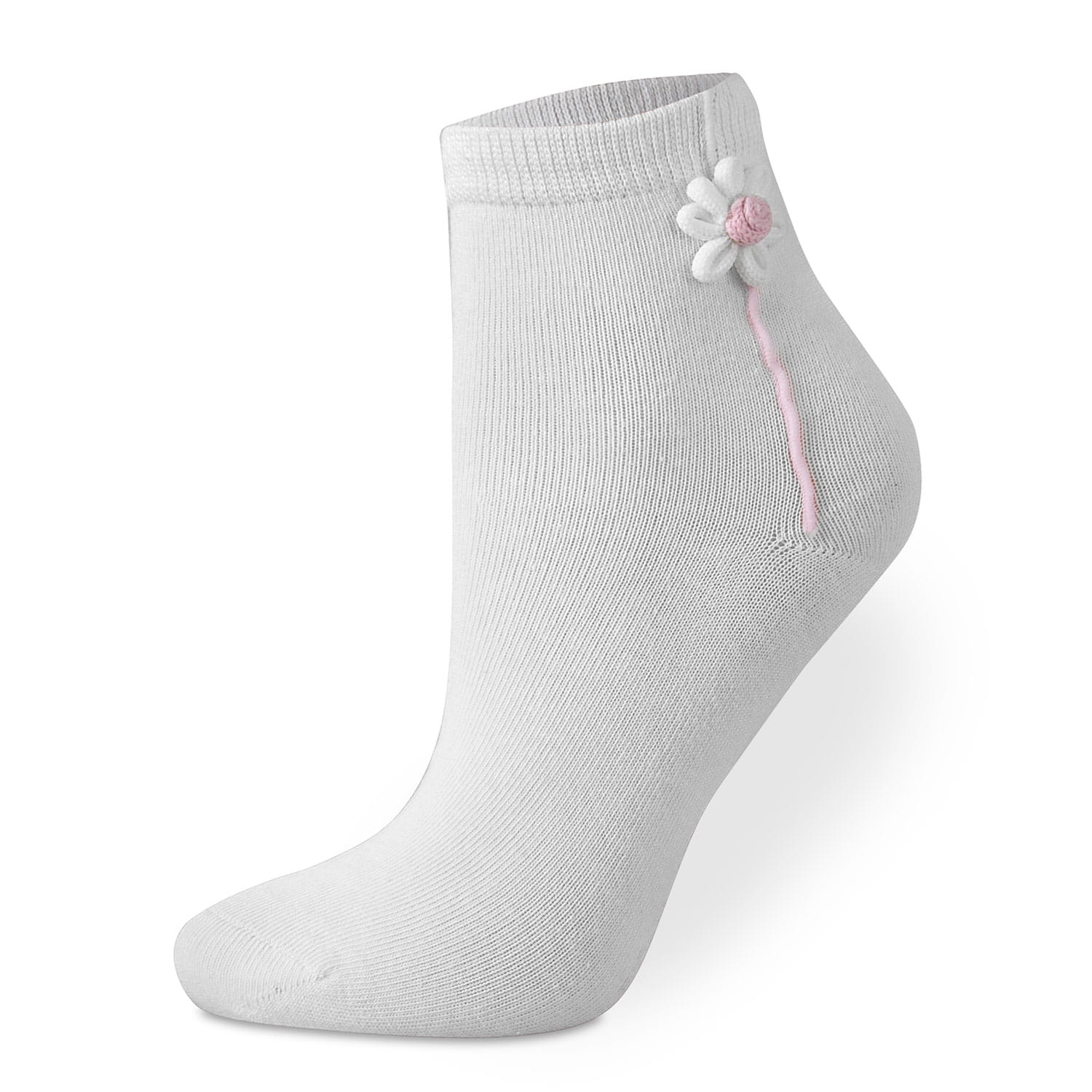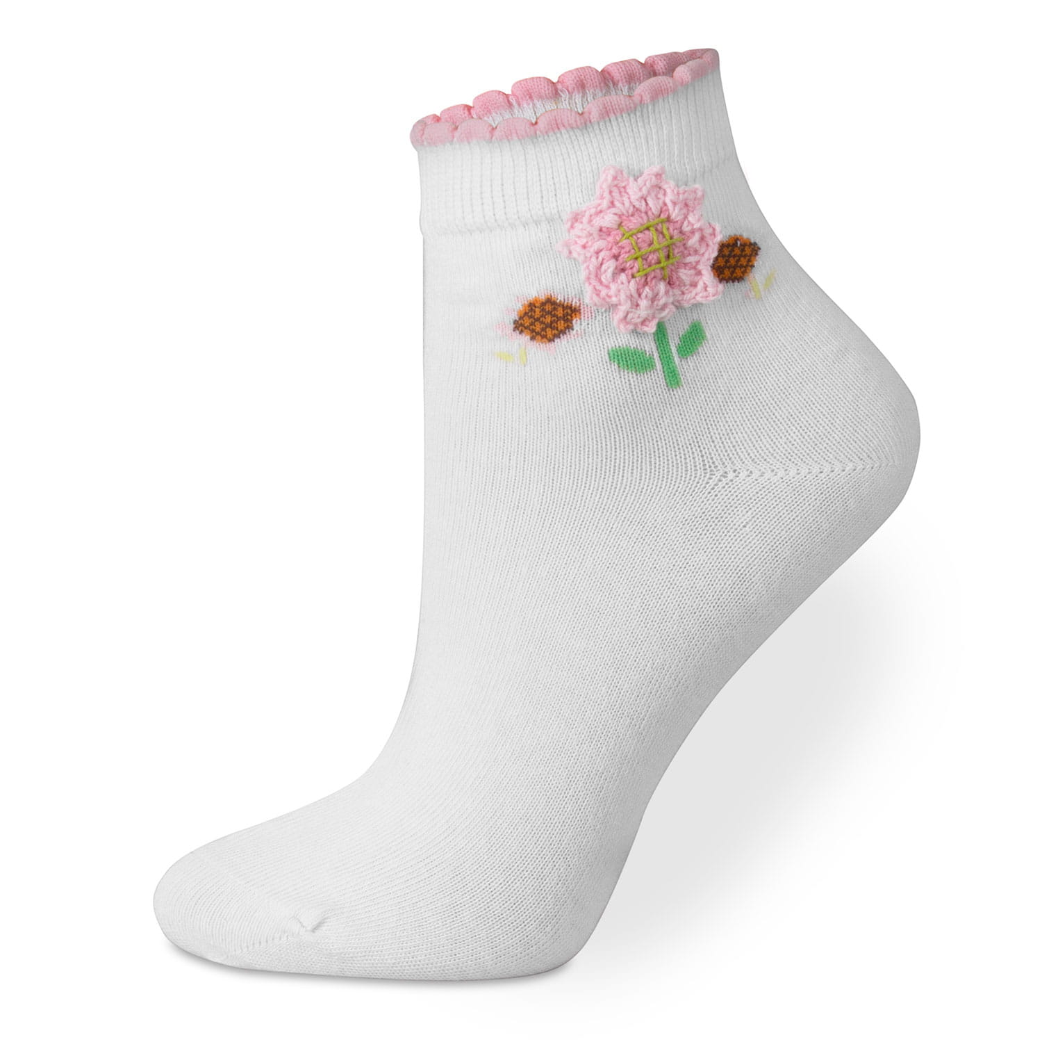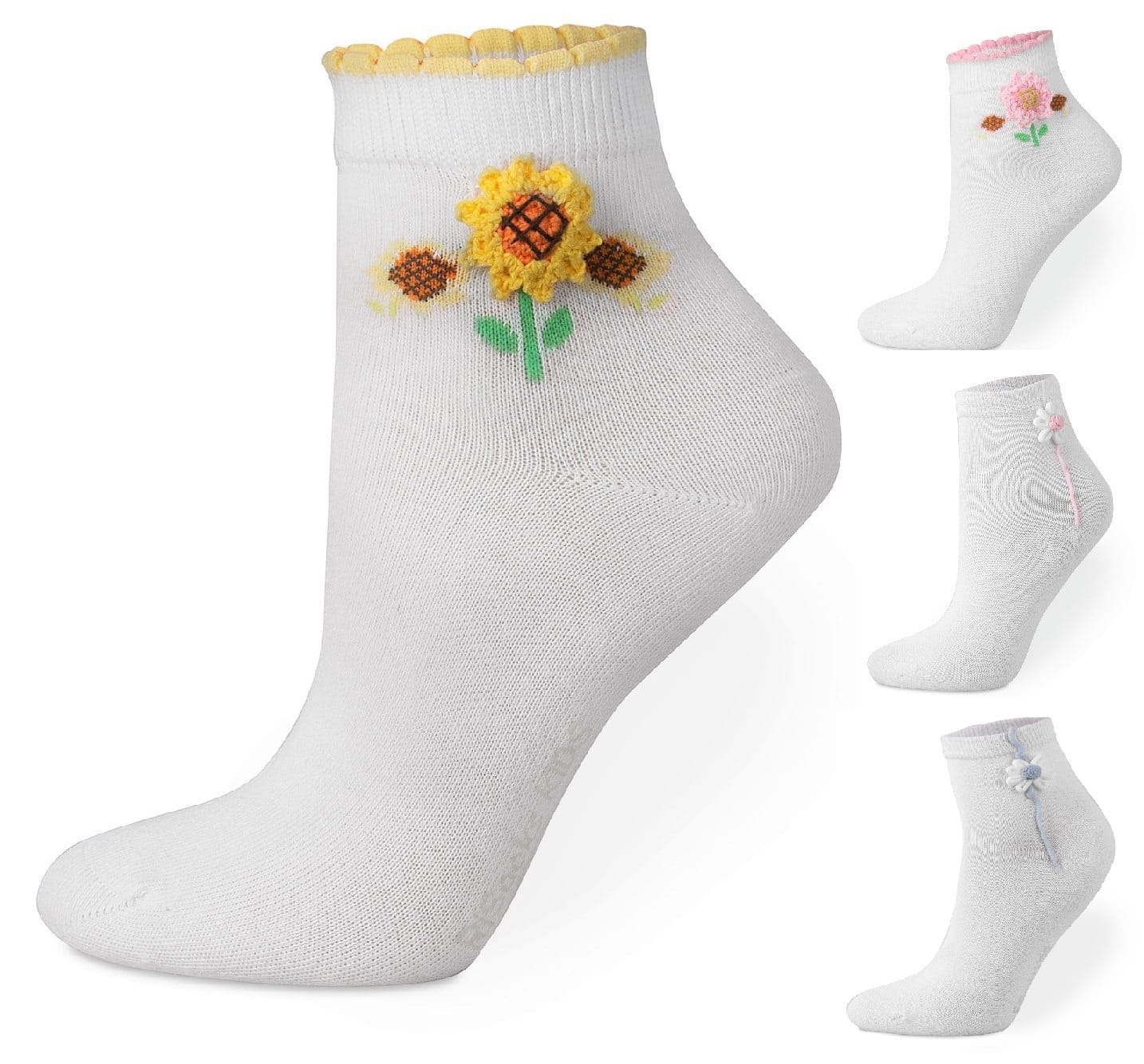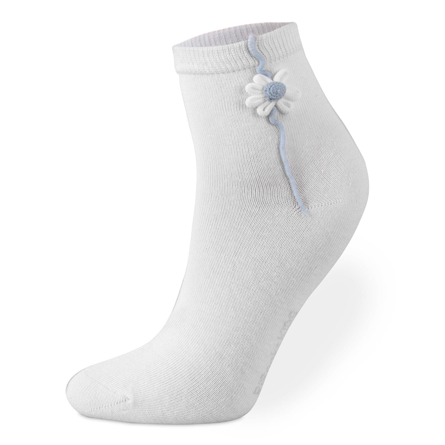 Eleganckie skarpetki dziewczęce z ręcznie robioną aplikacją, zapewniają wysoki komfort noszenia dzięki dużej ilości bawełny.
