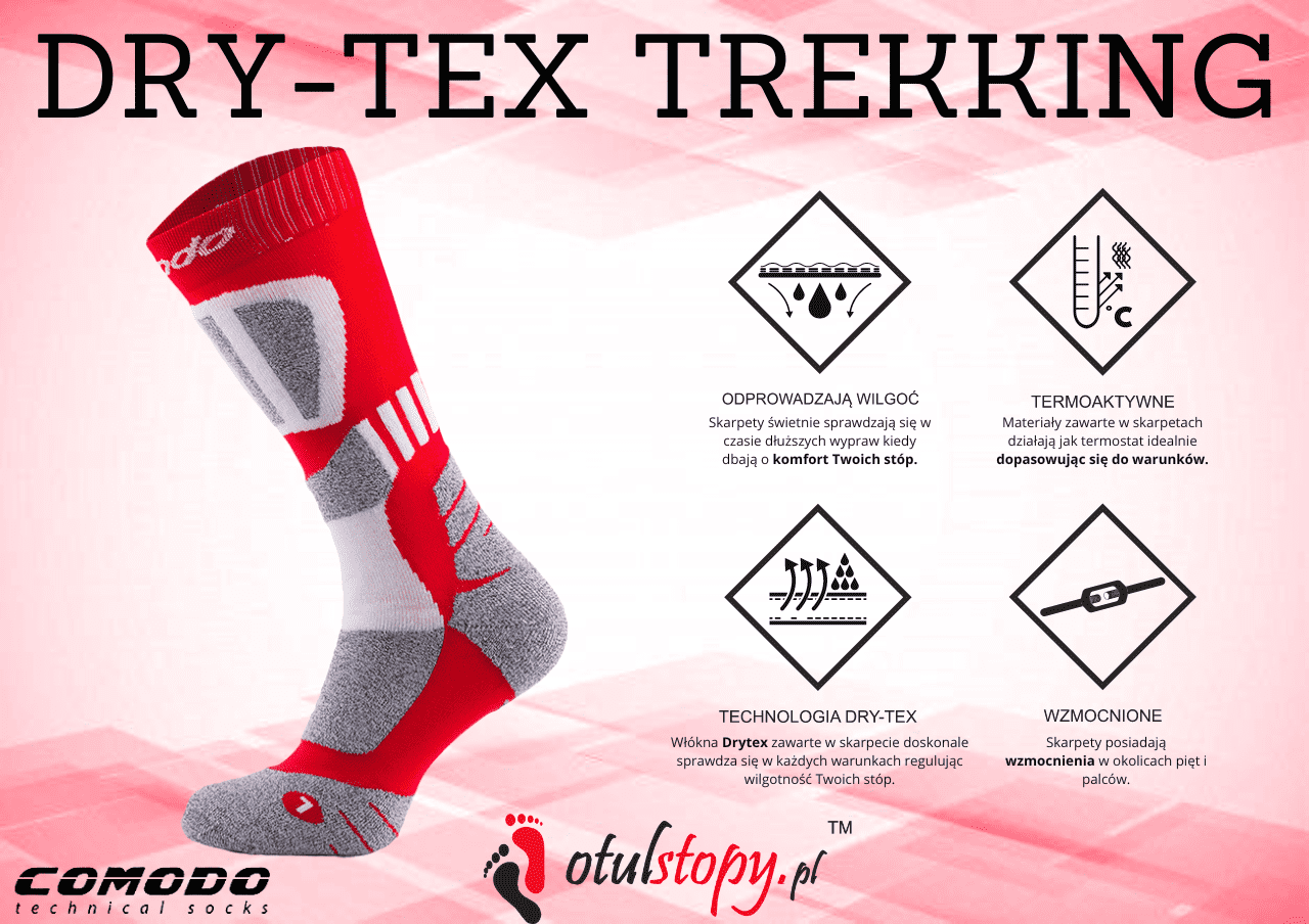 Drytex Comfort to innowacyjna tkanina techniczna o wysokiej jakości, stosowana między innymi przy tworzeniu skarpet trekkingowych. Charakteryzuje się miękką, przyjemną w dotyku teksturą, stanowiąc znaczny postęp w porównaniu do naturalnych włókien. Opracowana z myślą o ochronie przed ciepłem i wilgocią, technologia Drytex Comfort oferuje doskonałe właściwości oddychające. Dzięki temu, materiał ten skutecznie oddala wilgoć od skóry, zapewniając uczucie świeżości. Drytex Comfort wyróżnia się również trwałością mechaniczną, jednocześnie będąc lekkim i delikatnym materiałem. Odzież wykonana z tej przędzy zapewnia komfort i dobre samopoczucie podczas uprawiania ulubionych aktywności sportowych, co może zwiększyć efektywność wykonywanych działań. Noszenie ubrań z przędzy Drytex Comfort to prawdziwa przyjemność.