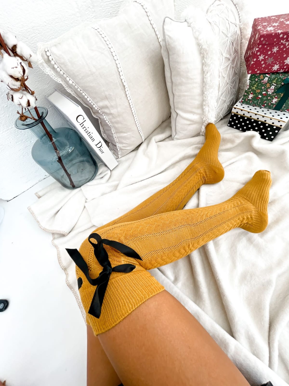 Zakolanówki Milena Bawełniane ze Wstążką